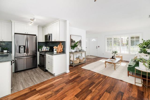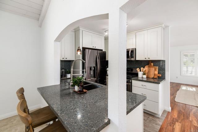 Welcome to this amazing single-story home in the desirable Sorrento Mesa neighborhood with no HOA! This beautifully remodeled residence boasts a stunning kitchen with quartz countertops and sleek white shaker cabinets, perfect for culinary enthusiasts. The family room features impressive vaulted and beamed ceilings, creating an open and inviting space for relaxation and gatherings. The home includes a modern, remodeled bathroom and a range of energy-efficient upgrades, such as 26 owned solar panels with upgraded electrical panel, a new roof, a newer HVAC system, and a tankless water heater. Step outside to enjoy the lushly landscaped backyard, ideal for outdoor entertaining, or appreciate the low-maintenance zero-scape front yard. Located in a prime area, this home is just moments away from a variety of restaurants, shops, and the scenic Los Penasquitos Reserve, offering the perfect blend of convenience and natural beauty. Don't miss the opportunity to own this exceptional property!