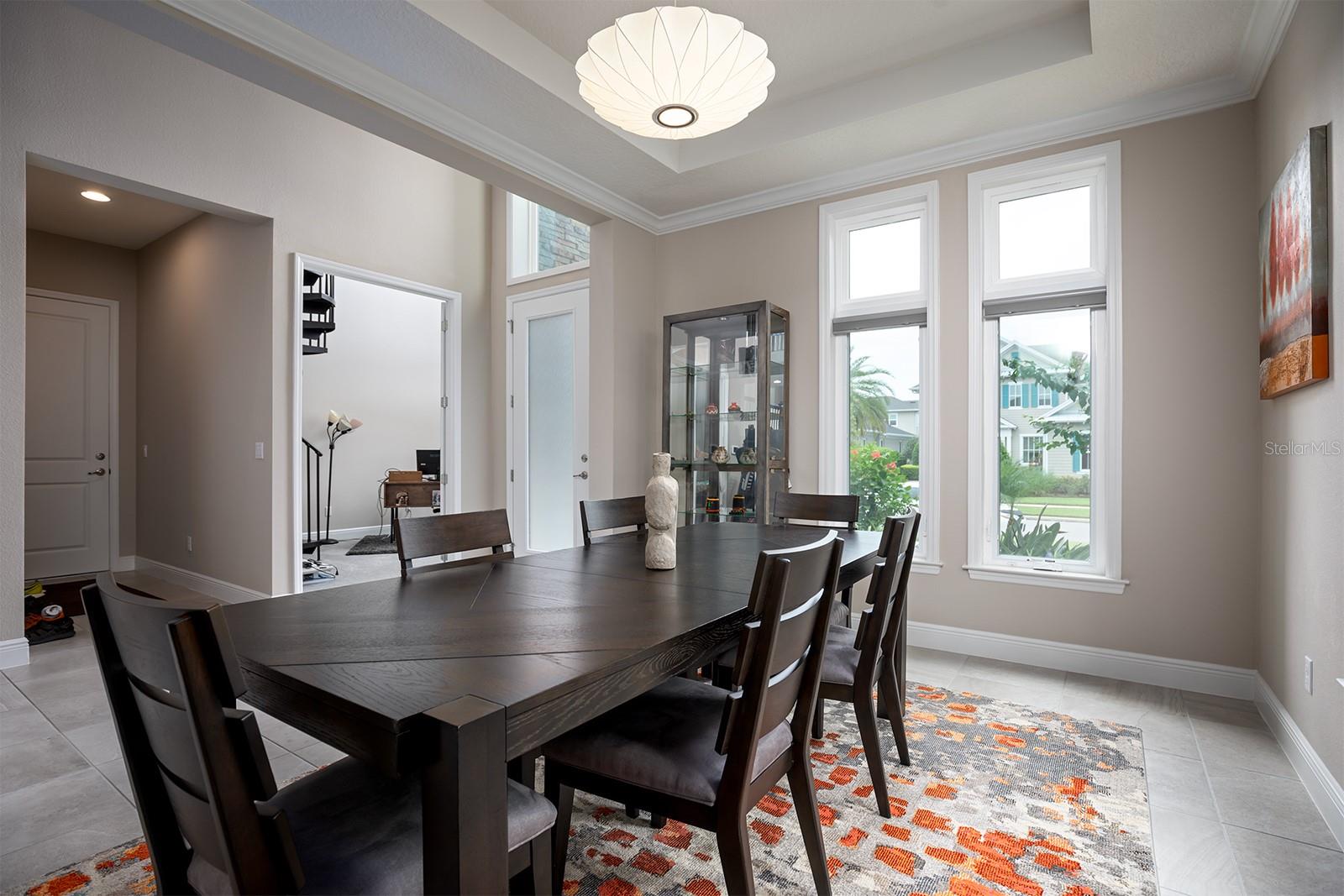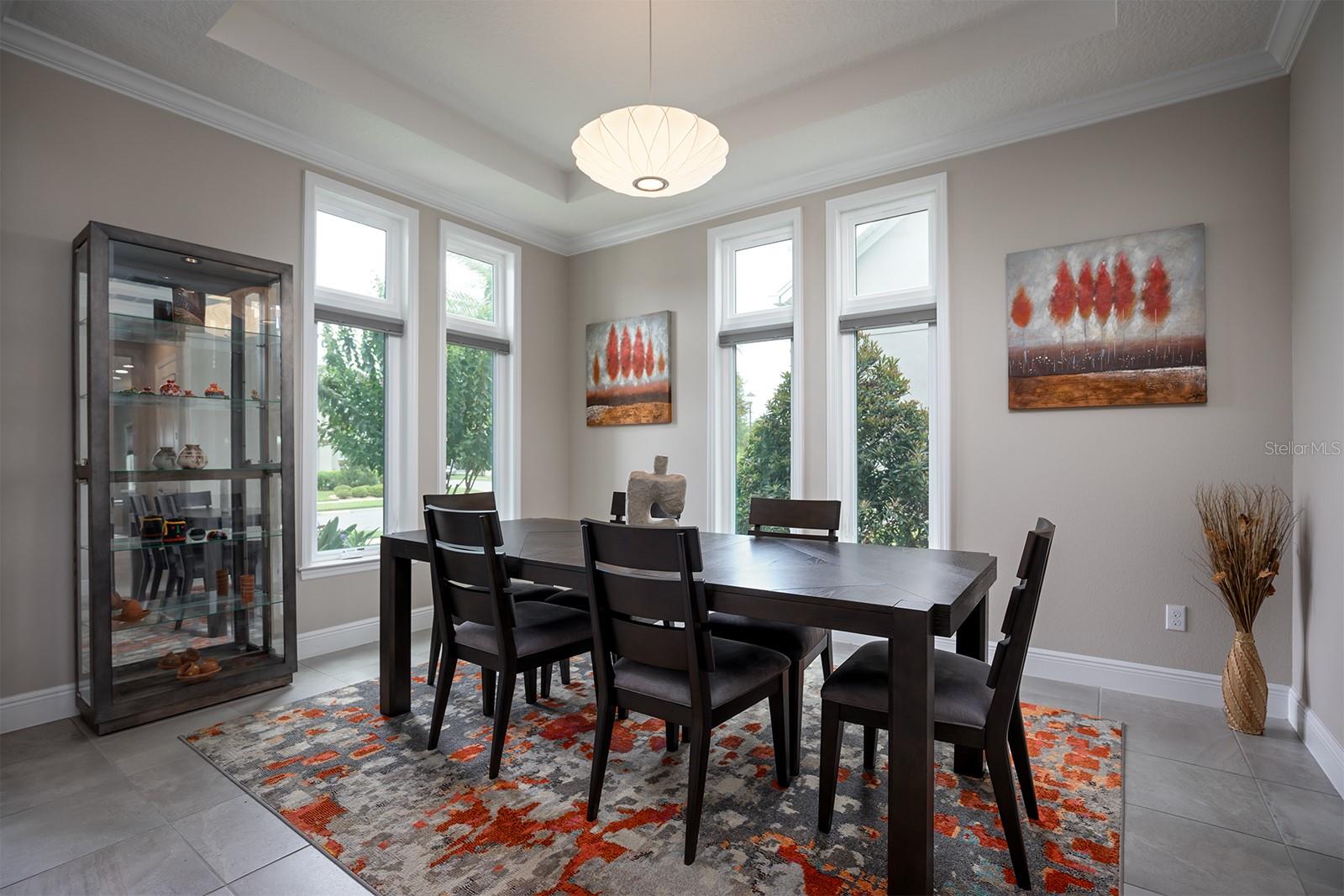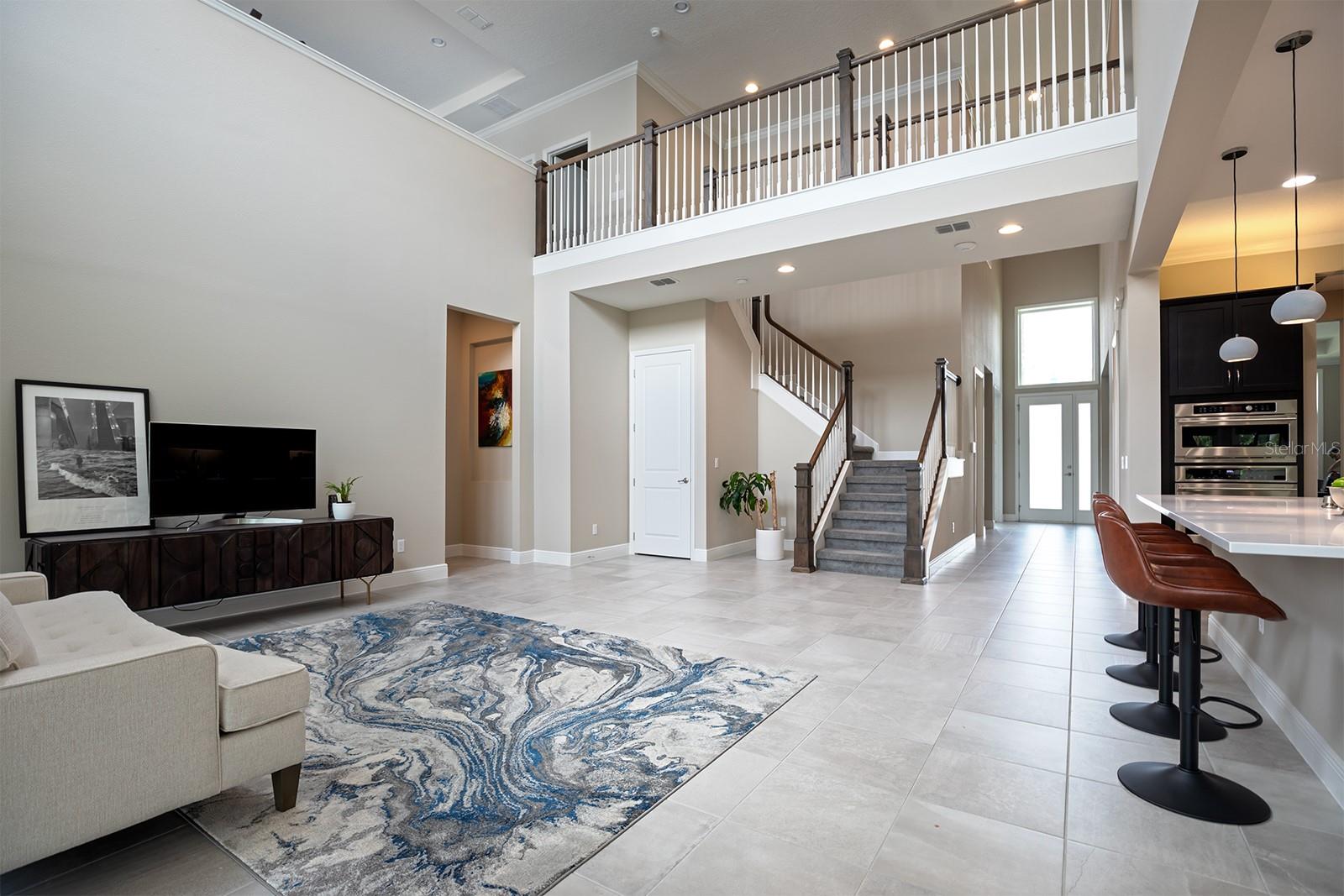 Welcome to this stunning custom home waiting for you in the gated portion of Laureate Park known as The Preserve. Built in 2018 by Taylor Morrison, this elegant residence boasts nearly 4,000 square feet of living space with 4-bedrooms, 3.5-bathrooms, and a spacious open floor plan featuring high ceilings and large windows fostering a warm and inviting atmosphere. A well-thought-out split-bedroom floorplan offers everyone their piece of paradise, including a private primary suite that boasts a tray ceiling, crown molding, remote-controlled blinds, double walk-in, custom closets, and quartz countertops along with a double sink vanity, soaking tub, and an expansive shower stall including a rain shower and two additional shower heads. In the heart of the home, the chef's kitchen, you will find a space ready for many meals and memories boasting all Monogram stainless-steel appliances, refrigerator, built-in convection oven and microwave, 5-gas burner cooktop with removable cast iron griddle, dishwasher, range hood (vented outside at up to 350 CFM). Open to the family room, it also includes Calcutta quartz countertops with a jumbo island featuring a floating overhang, breakfast bar, under-mount farm sink, walk-in pantry, and both under-cabinet and pendant LED lighting. Throughout the home, you will find a number of other lovely upgrades such as Levolor Cellular Blinds, a Pelican reverse osmosis whole home water filtration system, quality fixtures throughout, and endless hot water thanks to a tankless water heater. A quadruple slider from the family room leads you to the expansive screened in lanai and a beautifully landscaped backyard. Upstairs you will find a spacious loft along with the remaining three bedrooms and two bathrooms, one of which enjoys private access to the South-facing veranda. The Green Certified home is part of the Environments for Living (EFL) program with energy saving R-30 ceiling insulation, R-13 insulation in exterior frame walls, R-4.1 insulation on exterior block walls, energy saving compact lighting in most fixtures, double pane insulated and reflective Low-E windows, digital programable thermostats, and high efficiency 15 SEER rated heat pump and HVACs, operated separately for custom comfort upstairs and downstairs. Walking distance from Canvas Restaurant & Market and community amenities including a state-of-the-art clubhouse, Beep-Autonomous Vehicle Transportation at select stops around the Laureate Park community, LP Fit (3,200 sq ft state-of-the-art fitness center), Aquatic Center (lap pool, tranquil pool, cabana, and water play activities for kids), 2 community gardens, dog parks, pocket parks, playgrounds, tennis, pickleball, soccer fields, basketball courts, miles of walking trails. As part of the community fees, not only do you have access to all of these incredible offerings, but High-Speed Fiber Optic Internet is also included. Additionally, you are a short drive from top-rated schools, outdoor recreation, Performance Club, Nona Adventure Park, and much more. For anyone seeking both luxury and convenience in the heart of Lake Nona, this property is the epitome.