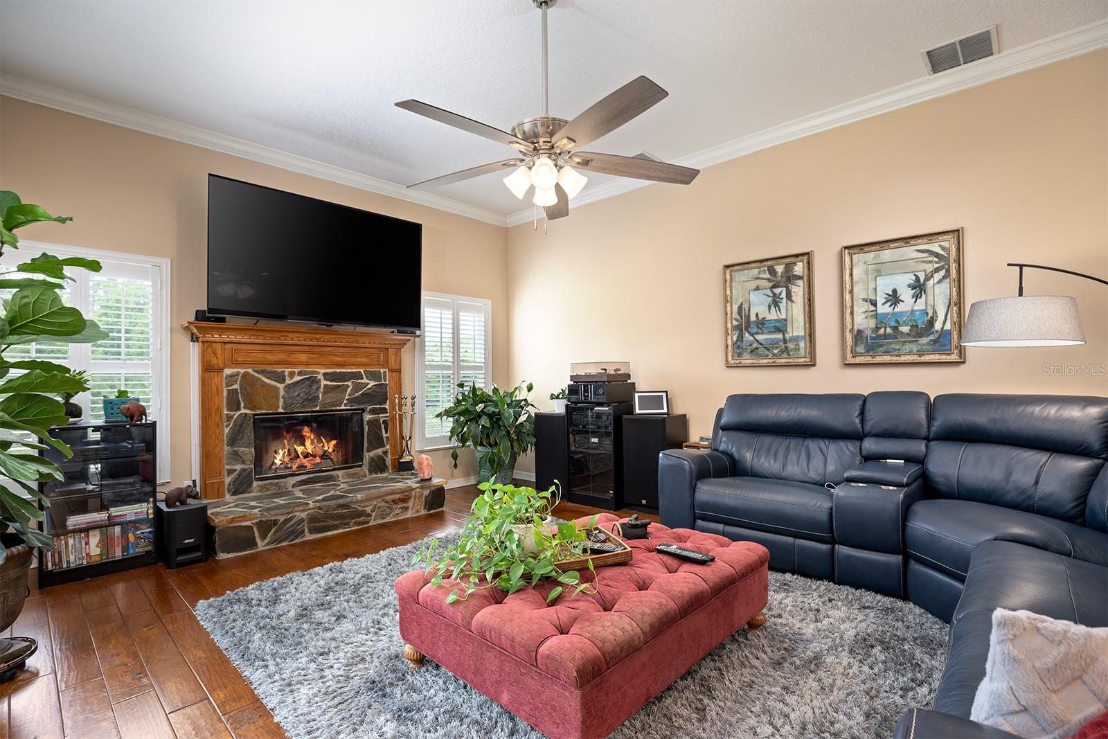 Welcome to Susan's Landing, a gated community where this stunning lake-front home sits on a 0.65-acre lot and provides an impeccable blend between luxury and everyday living with 3,178 square feet of living space. As you step inside, you're greeted by the warm embrace of sunlight dancing throughout the main living areas which lead you past the formal living and dining rooms, and into the heart of the home. Here you will find the family room, where a fireplace creates the perfect focal point for family gatherings and is overlooked by the pristine chef's kitchen offering granite countertops, a pantry closet, and high-end Electrolux appliances, ready for many meals and memories. Each room holds its place, and no detail was overlooked. From the double pane sliders and plantation shutters to the meticulous crown molding, to the spacious upstairs bonus room, to the Brazilian Wood dock, the level of care and attention to detail is clear. The large primary suite is your private oasis, complete with a tray ceiling and crown molding along with dual vanity cabinet sinks, granite counters, a jacuzzi tub, separate shower, and dual walk-in closets. Upstairs you will find the spacious bonus room and pool table that conveys, which could be turned into a fifth bedroom with the addition of a closet. Outside, the expansive backyard is an oasis of peace, offering a private escape with lush landscaping and a private dock with plenty of room for a pool or garden. The entire dock was built using Brazilian Wood and includes a jet-ski lift. With less than 15-minutes to everything you could need and 30-minutes to many of Central Florida's major attractions, this property is more than just a home--it's a piece of paradise waiting for you.